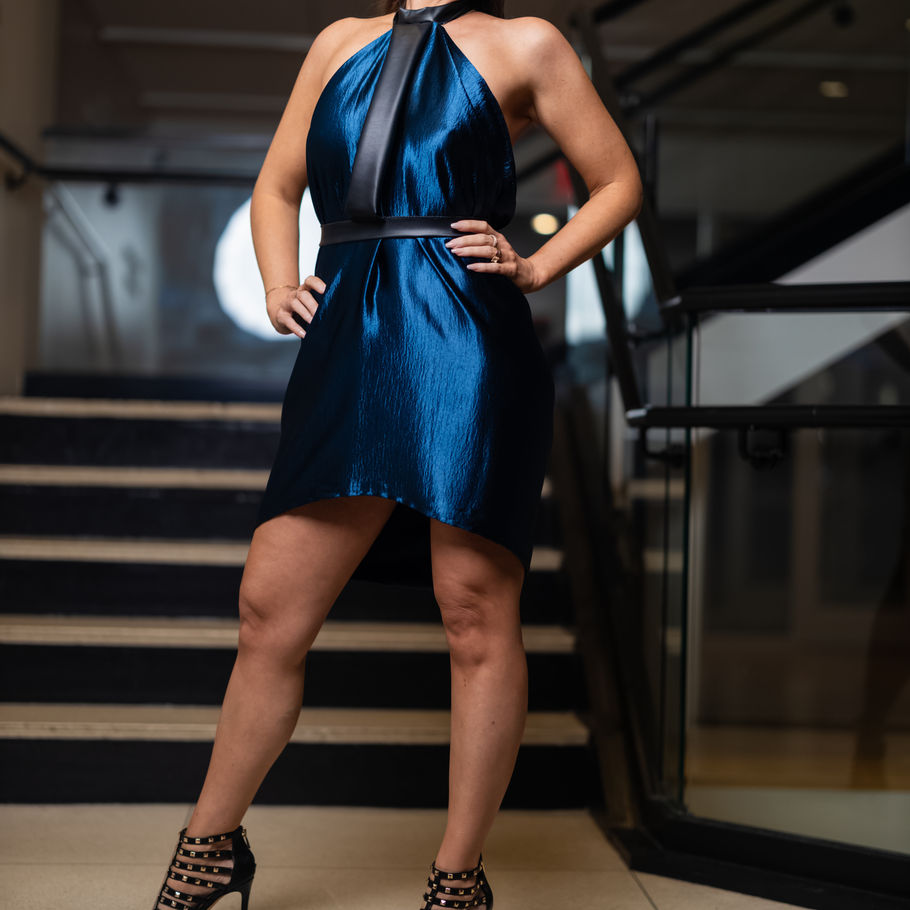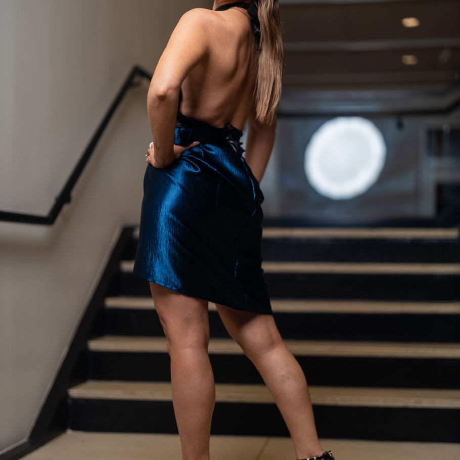Ariel Mid-Night Blue Halter Body Harness Dress